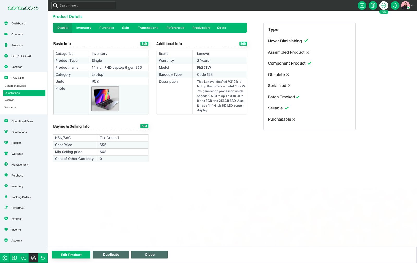 Single product history for inventory status, how many sold, how many on hand, how much on order, etc.